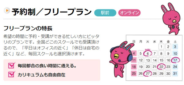 そしてネット上から時間帯を問わず、WEB予約が出来る仕様になっているため、少し不規則な働き方をしている社会人の方でも、仕事の都合に合わせて柔軟にレッスンを受講しやすいです。