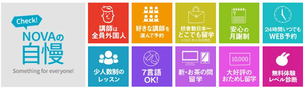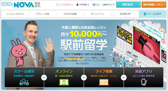 「NOVA」は国内でひと際、知名度がある英会話スクールであり、講師はみんな外国人となります。